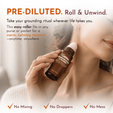 No droppers. No mixing. No mess. Simply roll onto pulse points like your wrists, temples, or behind the neck. -