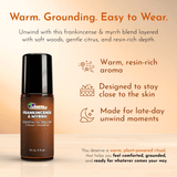 - Warm, wearable aroma: resin-rich blend of frankincense and myrrh designed to stay close to the skin rather than project like a perfume.